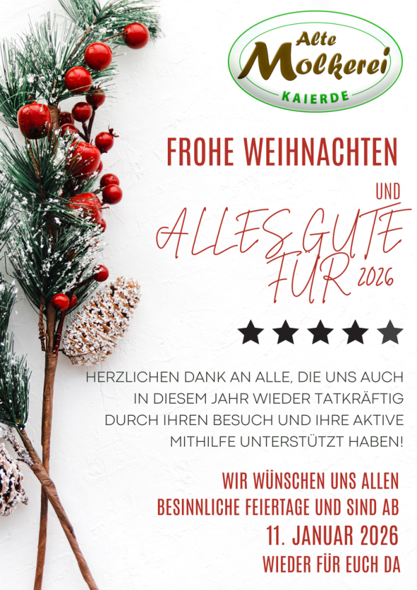 Tel. (05187) 303 3446 · willkommen@altemolkerei-kaierde.de
